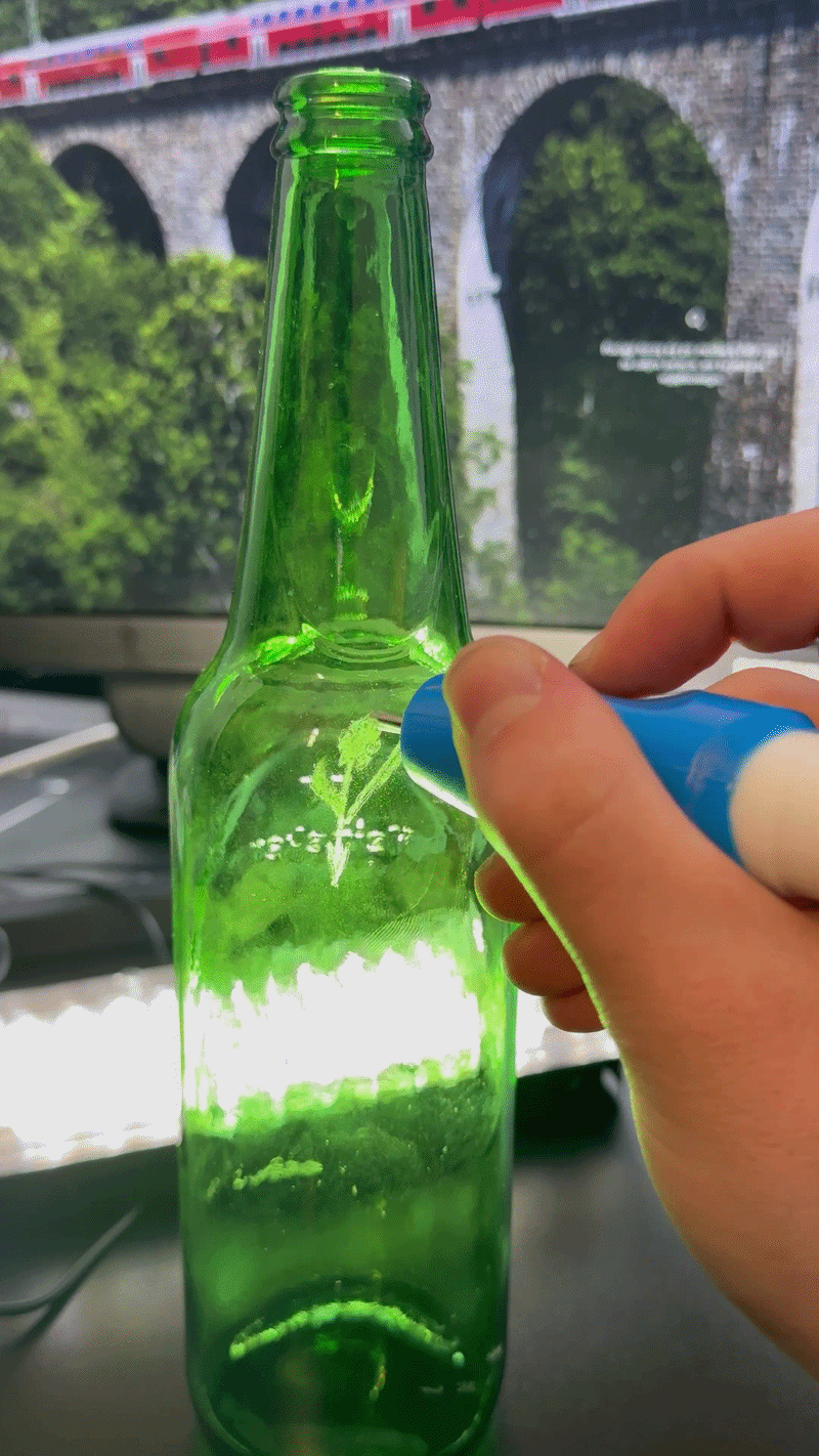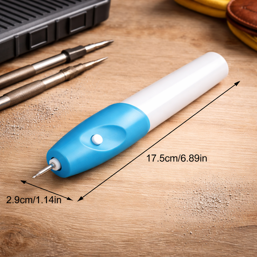 Tak — urządzenie działa na różnych materiałach jak drewno, szkło czy metal. Najlepsze efekty uzyskasz na twardych powierzchniach.